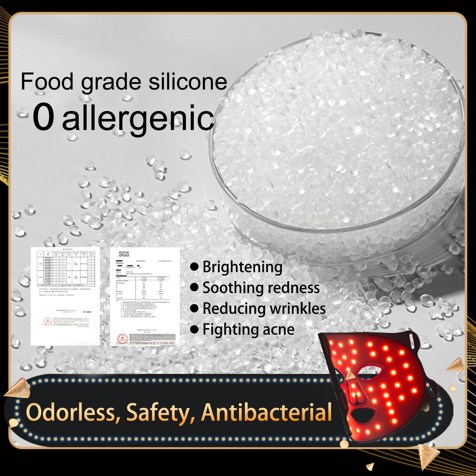 - Soft silicone mask designed for comfortable, close contact with the skin.