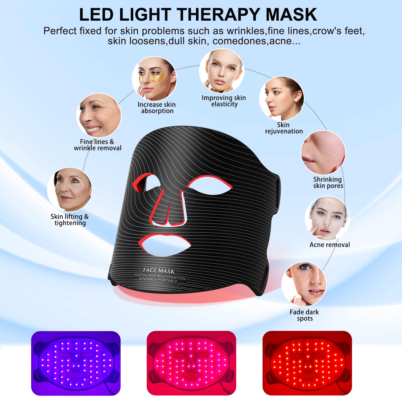 - Mixed Light — combines 620nm + 460nm + 850nm for a balanced, all-in-one routine.