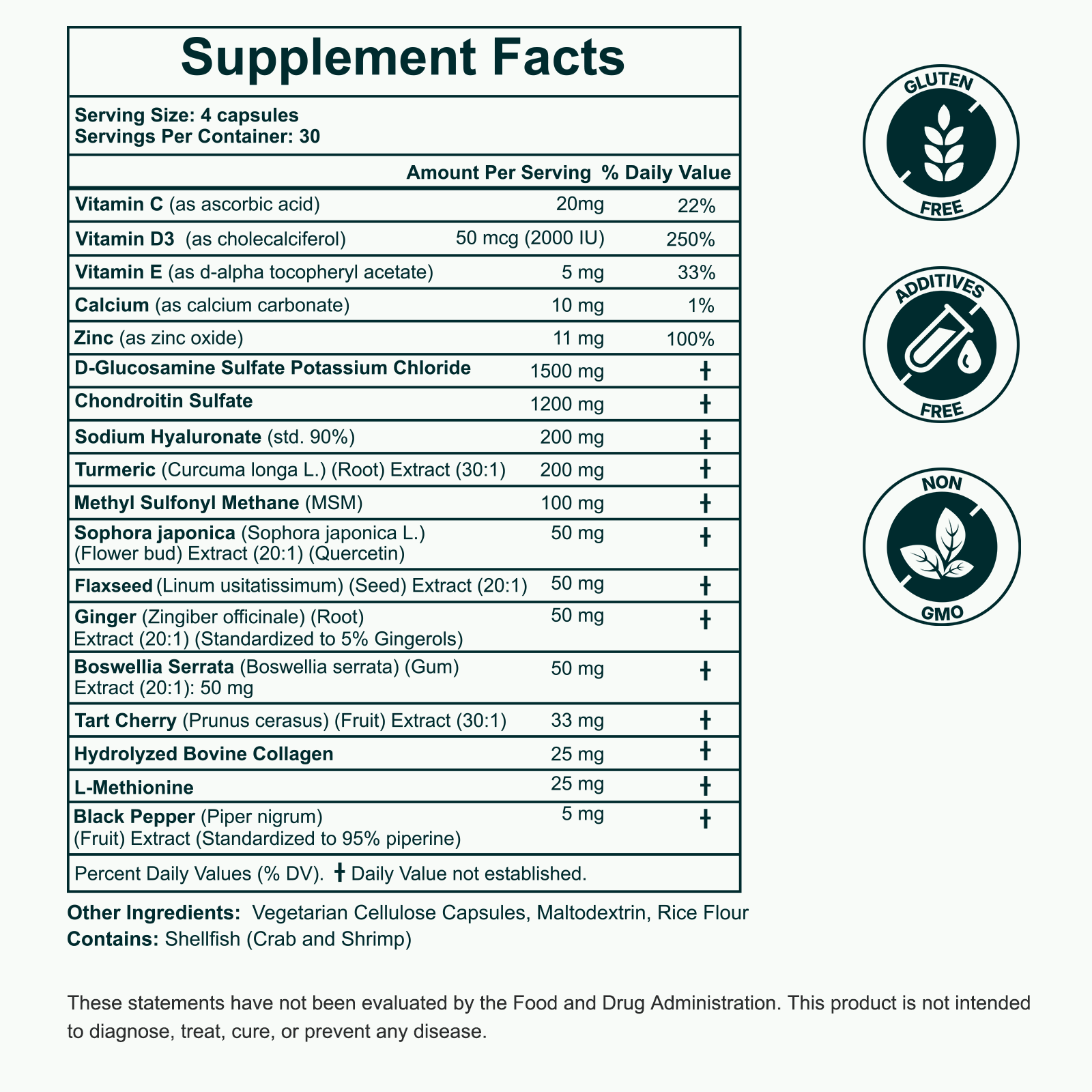Fmlave Glucosamine Chondroitin MSM 19-in-1 Potent Blend is an Advanced Joint Support Supplement with glucosamine chondroitin msm and Turmeric for adults who take Joint Health Support seriously and want more than a basic Joint Supplement. Each daily serving of 4 capsules delivers clinically relevant doses of D-glucosamine sulfate, chondroitin sulfate, MSM, turmeric, boswellia, ginger, tart cherry, hyaluronic acid and collagen in a 19 in 1 Joint Support Supplement with glucosamine chondroitin msm and Turmeric designed to cushion, lubricate and protect hardworking joints.